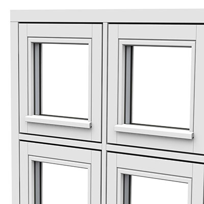 Top guided windows open out on concealed friction hinges